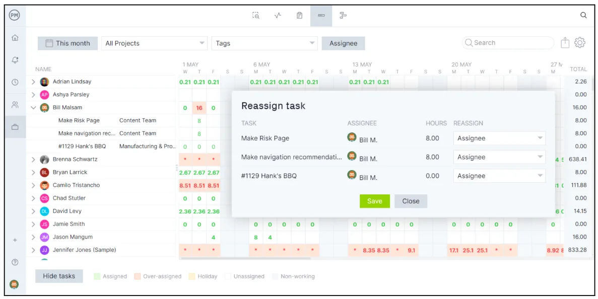 Mampu menjaga keseimbangan beban kerja tim sangatlah penting Jika mereka dialokasikan secara berlebihan, berisiko mengalami kelelahan dan frustasi tim. Disisi lain, jika tim kurang terdistribusi, maka karyawan tidak bekerja sesuai kapasitas dan tidak produktif. Metode Workload Analysis dapat mengawasi alokasi dan memungkinkan manajer proyek menerapkan keseimbangan beban kerja.